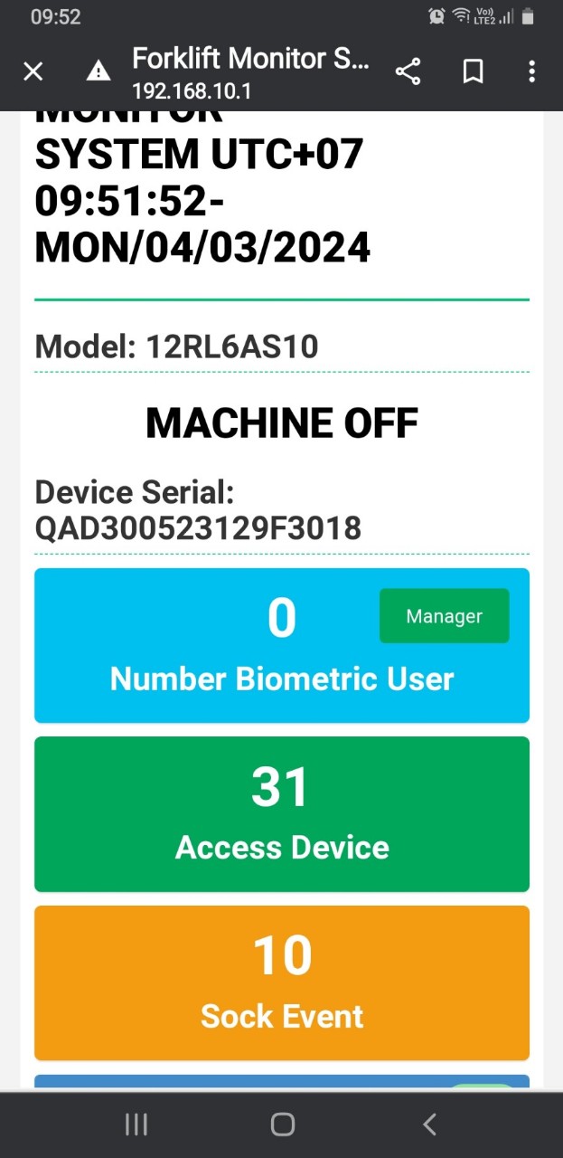 • Quản lý được thời gian vận hành xe nâng theo từng cán bộ lái xe;